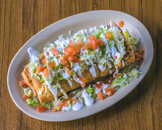 Choice of meat, beans, cheese deep fried tortilla, topped with lettuce, tomatoes, and sour cream. Add guacamole for an additional 2